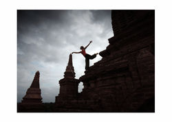 ![]() Premiers pas en Asie pour Flo. Ici Bangkok après une nuit dans le vieux quartier Chinois. Derrière la porte, demain, la Birmanie... | ![]() 11am petite pose dans la jungle. Flo s'évade. Douces pensées... Une locale viendra la tirée de sa torpeur en lui demandant un coup de main pour préparer le repas sur un tout petit brasero... Que de rires... | ![]() Bagan 10pm. Danseuse sacrée... Elle sera séduite par les temples et me demandera de lui laisser passer la nuit seule près d'un bouddha gigantesque au cœur d'un de ceux-ci. Je me suis éclipsé. |